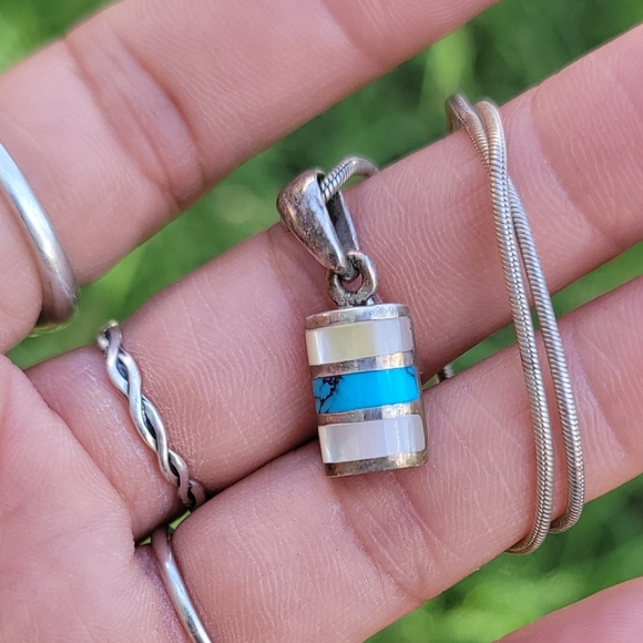 This pretty ring features all genuine, earth mined gemstones, including teal fluorite and white topaz. The first two photos show the color of the fluorite stone in indirect sunlight vs under incandescent lighting. The total gemstone carat weight on this piece is 4.70. The ring is set in solid .925 sterling silver with a platinum plate to prevent tarnishing. The ring in the photos is the actual one you will receive, so please see photos for quality and measurements. Size 6.